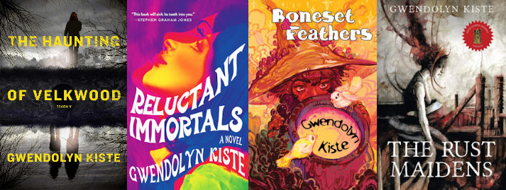 Gwendolyn Kiste is the three-time Bram Stoker Award-winning author of The Rust Maidens, Reluctant Immortals, And Her Smile Will Untether the Universe, Pretty Marys All in a Row, The Invention of Ghosts, and Boneset & Feathers. Her short fiction and nonfiction have appeared in outlets including Lit Hub, Nightmare, Tor Nightfire, Titan Books, Vastarien, Best American Science Fiction and Fantasy, and The Dark among others. She’s a Lambda Literary Award winner, and her fiction has also received the This Is Horror award for Novel of the Year as well as nominations for the Premios Kelvin and Ignotus awards.Originally from Ohio, she now resides on an abandoned horse farm outside of Pittsburgh with her husband, their calico cat, and not nearly enough ghosts. You can also find her online at Facebook and Instagram.